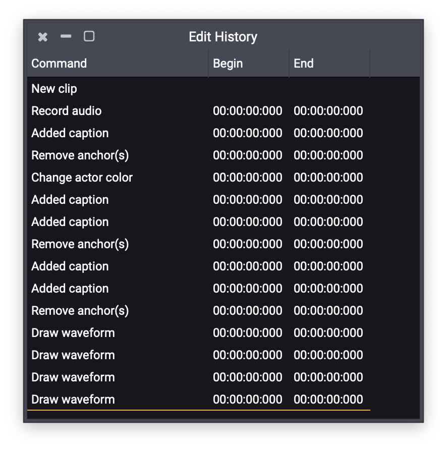 As users work in Acoustica 7.5, the program is constantly keeping a log of every action taken. This log can be viewed by opening the Edit History panel.