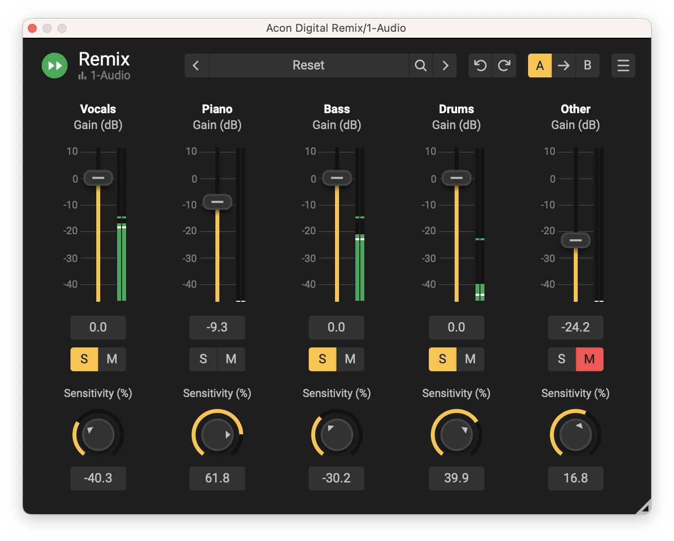 Acon Digital Remix is an impressive and truly cutting-edge stem separation plugin. Being able to perform real-time stem separation and hear parameter adjustments as you make them is a powerful thing.