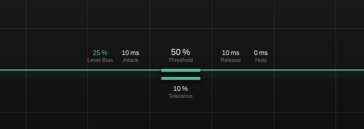 When using smart:gate as a traditional gate – AKA with no profile selected – the incoming signal is displayed in the main workspace behind the threshold bar making it easy to visually set the threshold to exclude certain elements from your audio.