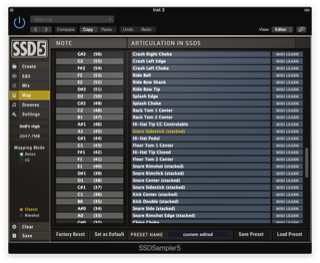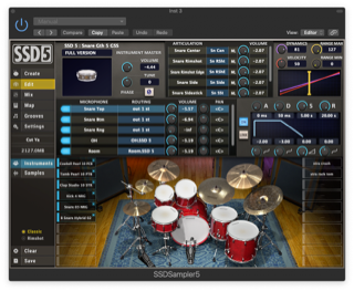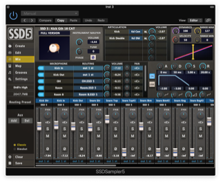 The kits in SSD5.5 are fully editable and can be reconfigured and reconstructed, or created from scratch from individual instruments as the mood strikes you. Sounds can be mapped across the entire MIDI note range in a variety of ways, including categorized menus, drag and drop, and MIDI learn. You can even add your own samples if the need arises, though velocity switching, round robin alts, and certain mapping features are not available for non-SSD samples.